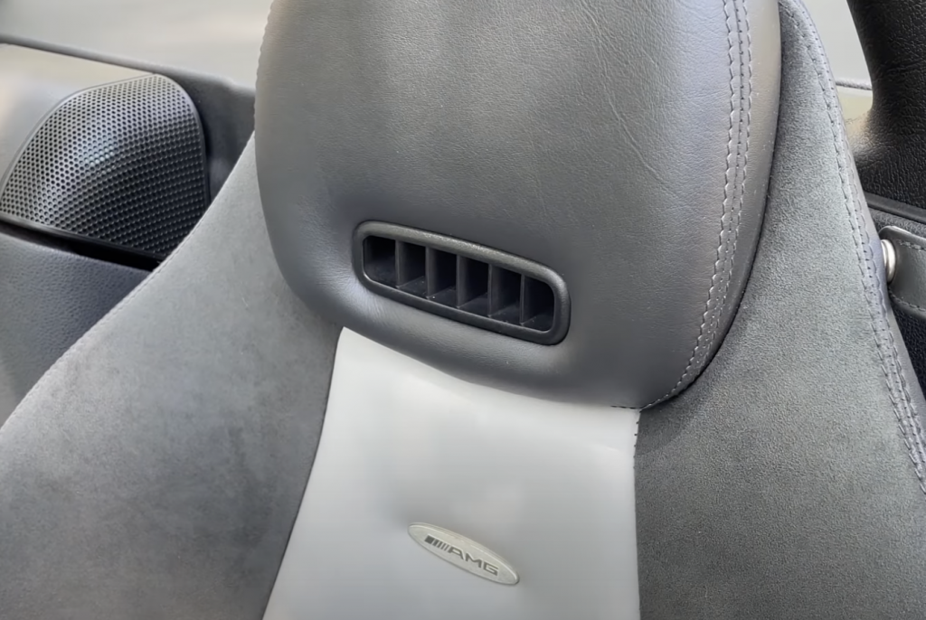El interior esta hecho en cuero y presenta elementos a destacar como la función Air Scarf (Bufanda de aire) que es una salida de aire en el apoya cabezas, por si sentís frio con el techo descapotable, podes tener aire caliente en el cuello. En el sistema de entretenimiento, se puede notar el paso de tiempo. El touch y el diseño de los botones te trasladan dos décadas atrás.