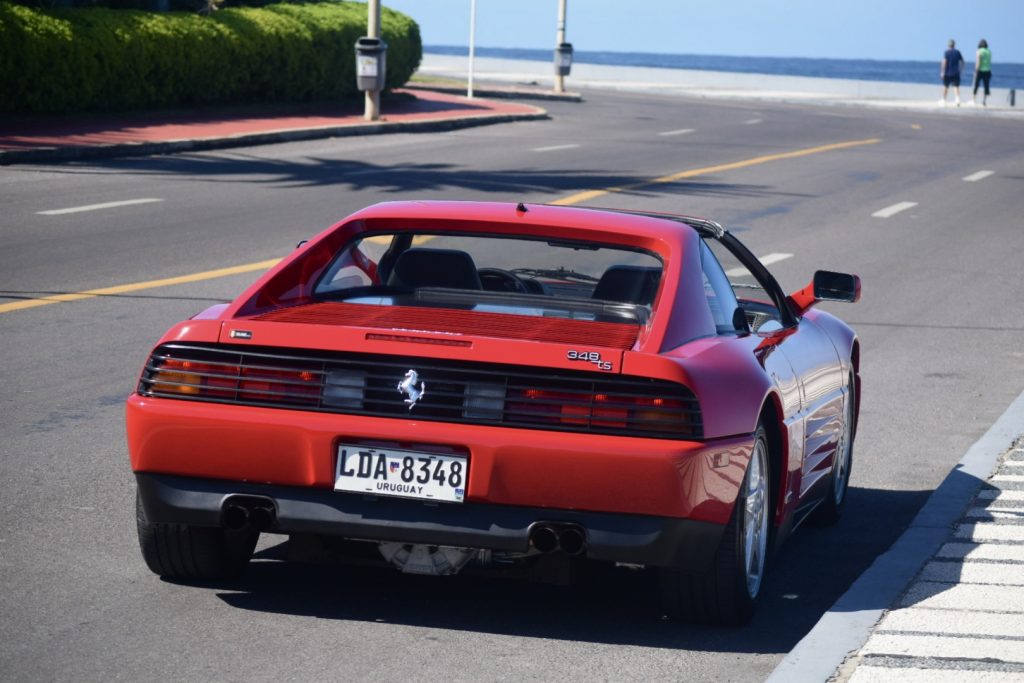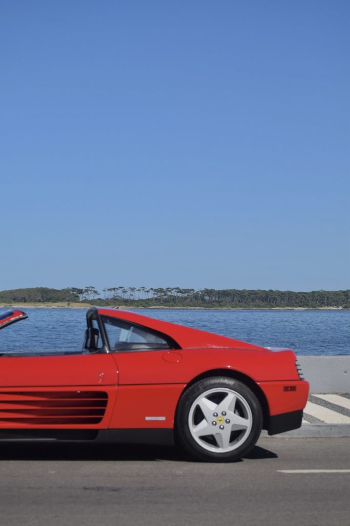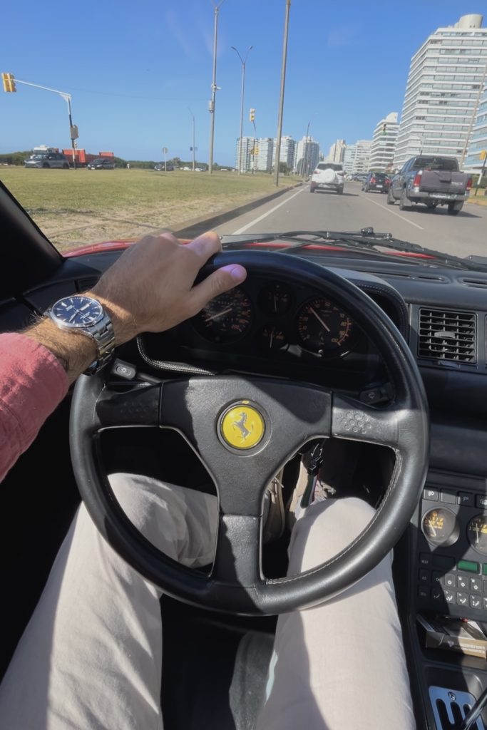 Conducir el Ferrari 348 TS es una experiencia que despierta todos los sentidos. Desde el momento en que se enciende el motor, el rugido del V8 te conecta con su espíritu deportivo. La aceleración es progresiva y visceral, llevándote de 0 a 100 km/h en solo 5,6 segundos, mientras el sonido del escape te envuelve. La dirección sin asistencia proporciona una conexión directa con la carretera, haciendo que cada curva sea una extensión de tus movimientos. Sin embargo, su baja altura al suelo puede ser un desafío en calles con lomos de burro, como las de Punta del Este, donde la precaución se vuelve esencial. Este auto exige concentración y recompensa al conductor con una agilidad impresionante y una estabilidad notable incluso a altas velocidades. La combinación de su “gated shifter”, que permite cambios precisos, y su sistema de suspensión independiente, garantiza que el manejo sea tanto emocionante como confiable. Cada kilómetro a bordo del 348 TS refuerza la idea de que estás conduciendo una leyenda automotriz, donde el placer de manejo supera cualquier comodidad moderna.